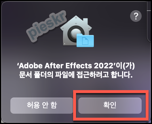 "Adobe After Effects 2022'이 문서 폴더의 파일에 접근하려고 합니다." 라는 메시지가 나오게 된다면 확인을 누르고 넘어가 주시면 됩니다.