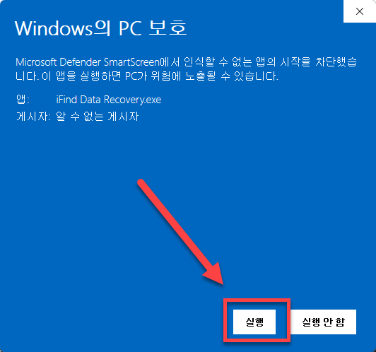 이제 다시 리커버리를 실행해 주시면 됩니다. Windows의 PC 보호에서는 추가 정보를 클릭한 후 실행하시면 정상 실행이 가능합니다.