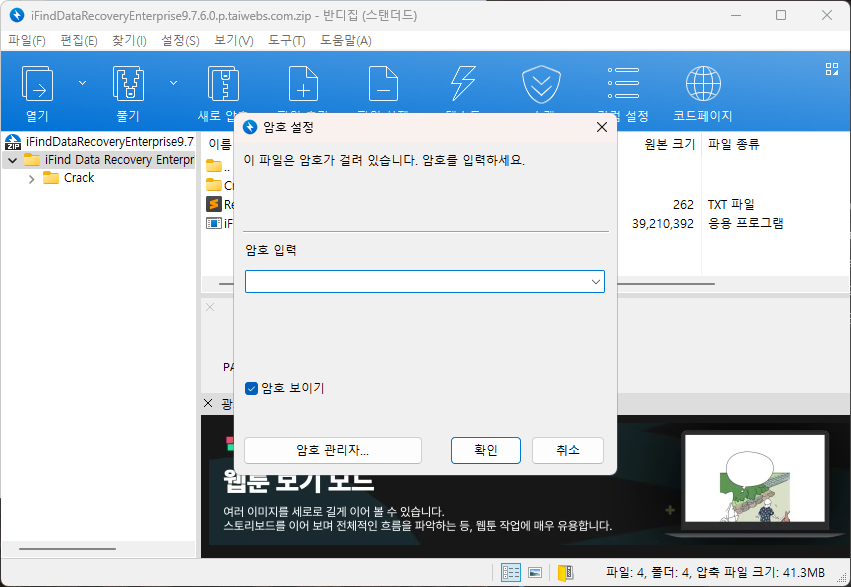 암호는 [taiwebs.com] 을 입력해 주시면 됩니다.