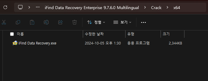 iFind Data Recovery Enterprise 9.7.6.0 Multilingual\Crack\x64 경로로 들어가시면 iFind Data Recovery.exe 파일이 있습니다. 이 파일을 복사해서 설치 폴더에 붙여넣어 주셔야 합니다.