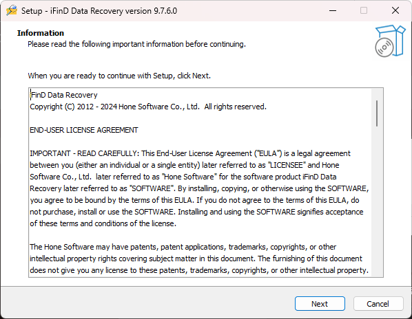 Next를 클릭하시면서 설치를 진행해 주시면 되는데, 중요한 점은 Launch iFinD Data Recovery 체크를 해제한 후 Finish를 클릭해 줍니다.