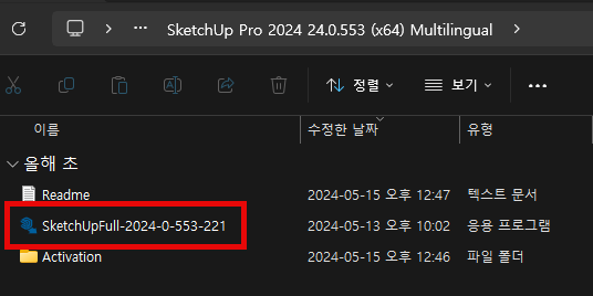 압축을 해제하셨다면 안에 Sketchupfull 파일을 실행해서 스케치업을 설치를 해줍니다.
