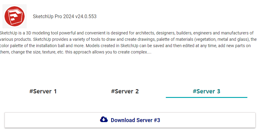 먼저 Server1~3 중에 선택해서 Download Server를 클릭해서 스케치업 프로 2024를 다운로드 해줍니다.