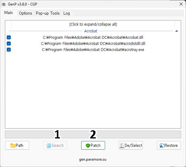 Search 버튼을 통해서 내 PC에 설치되어 있는 Adobe 프로그램들을 검색해 줍니다.