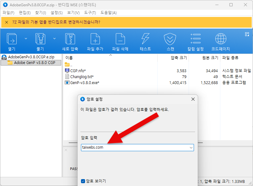 압축을 해제해 줍니다. 패스워드는 위 이미지를 참고해 주세요