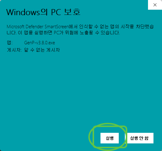 이렇게 정식으로 만들어진 소프트웨어가 아닐경우 윈도우에서 인증되지 않은 프로그램으로 인해 바이러스로 탐지될 수 있습니다.
