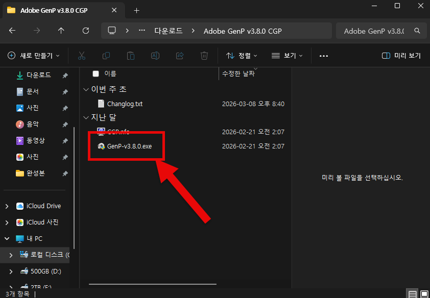 압축해제한 폴더로 이동하신 후 GenP-v3.8.0 exe파일을 실행해 줍니다.