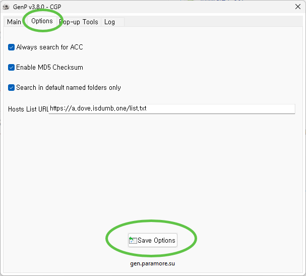프로그램이 정상적으로 실행이 되셨다면 Options로 가셔서 3가지 항목들을 모두 체크하신 후 Save Options를 클릭해 옵션을 저장해 줍니다.