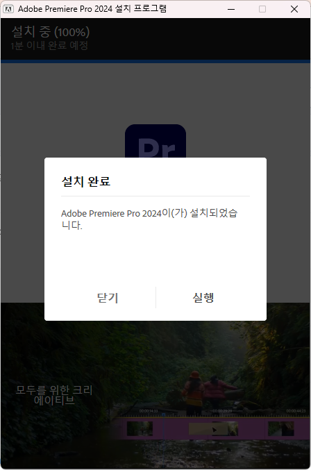 설치 완료 후에는 닫기를 클릭한 후 크랙 인증을 진행해 주셔야 합니다.