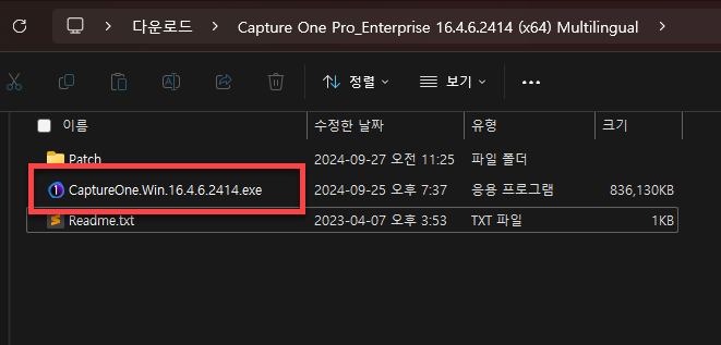 이제 압축 해제가 완료 되셨다면 이제 Captureone win exe 파일을 실행해서 설치를 진행해 주셔야 합니다.