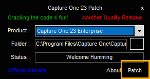 Capture One 23 Enterprise를 선택해 주시고 우측 하단에 Patch를 클릭해서 패치를 해주시면 됩니다.