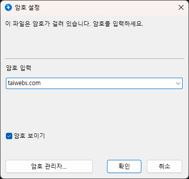 압축을 푸실 때에는 비밀번호는 위와 같이 입력해 주시면 됩니다. 암호 보이기로 이미지에 표시해 두겠습니다.