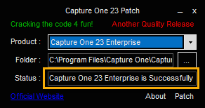 Capture One 23 Enterprise를 선택해 주시고 우측 하단에 Patch를 클릭해서 패치를 해주시면 됩니다.